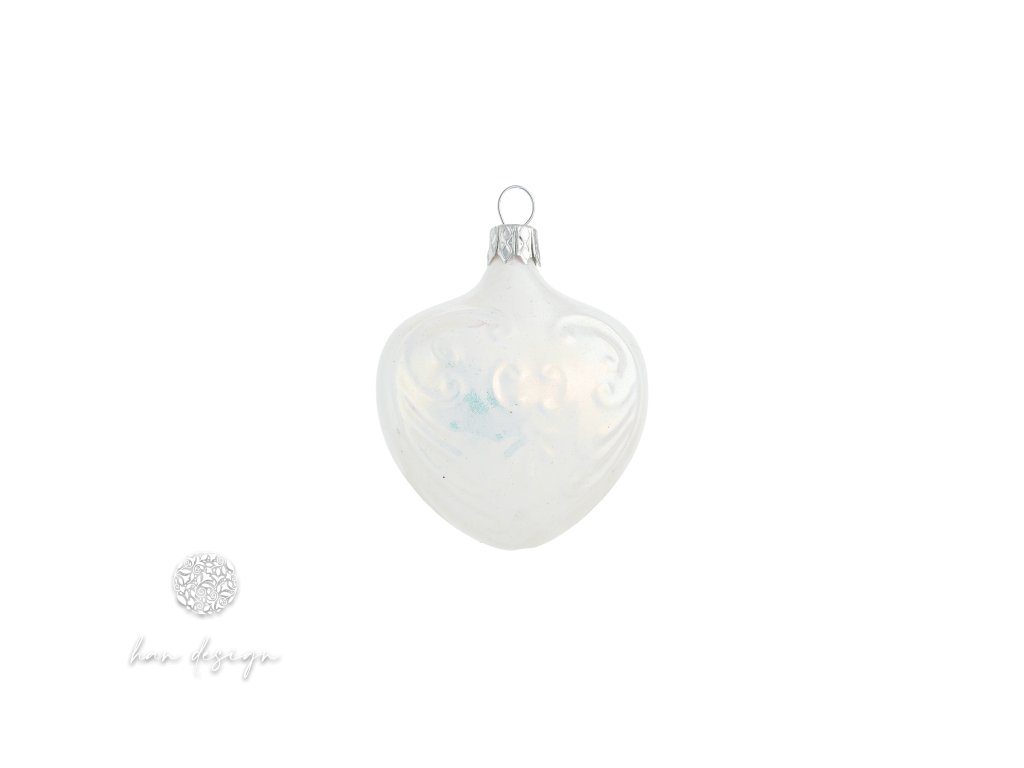 Vánoční skleněná ozdoba – bílé romantické srdíčko