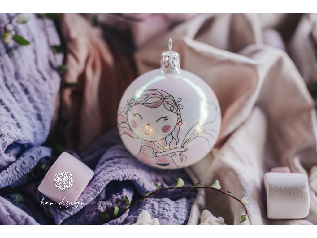 Vánoční skleněná ozdoba – koule „Dívka s balonky“