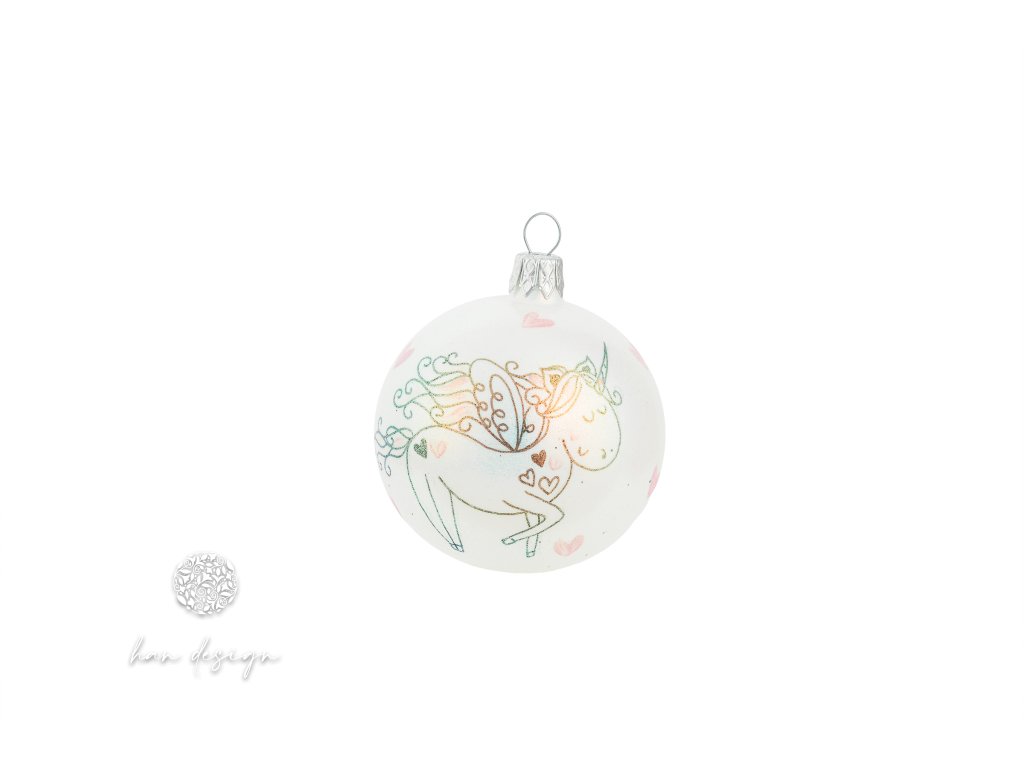 Vánoční skleněná ozdoba – koule „Jednorožec“