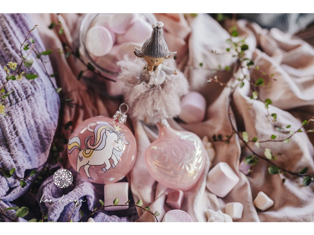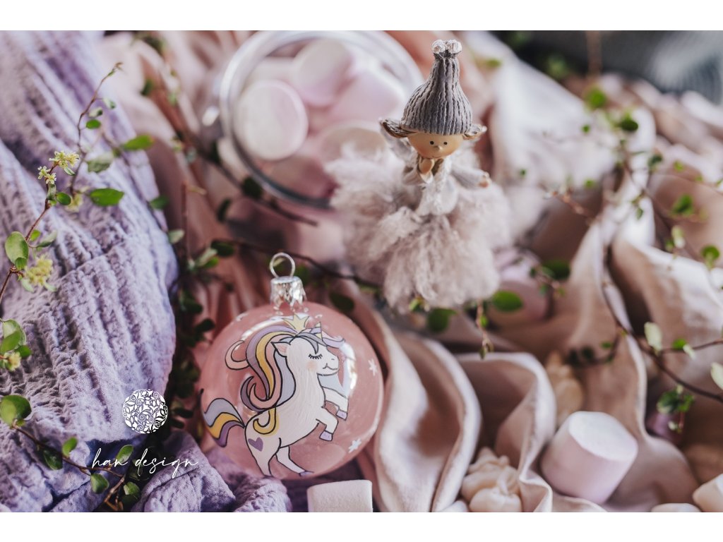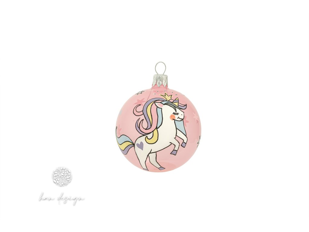 Vánoční skleněná ozdoba – koule „Malý jednorožec“