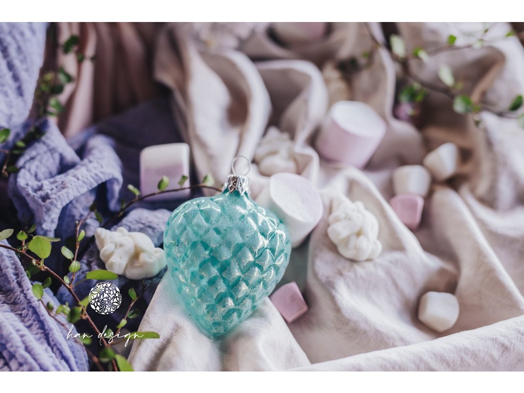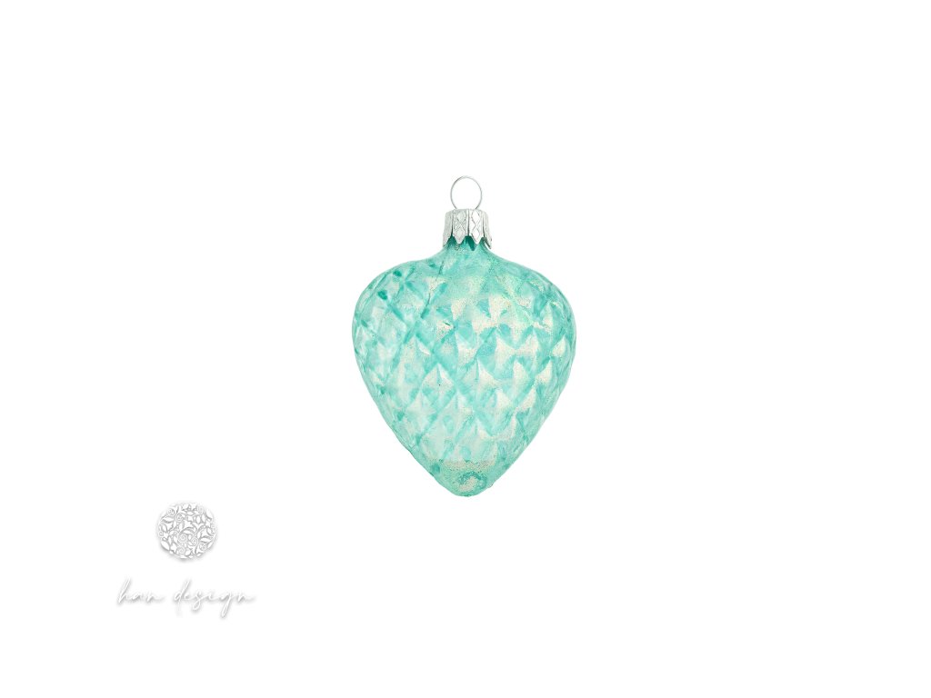 Vánoční skleněná ozdoba – tyrkysové vaflové srdíčko