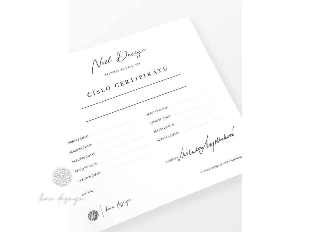 Tato jedinečná kolekce je zabalená v elegantní dárkové krabici, která podtrhuje její výjimečnost. Součástí balení je Certifikát originality s vlastnoručním podpisem autorky, který zaručuje jedinečnost a pravost výrobku.