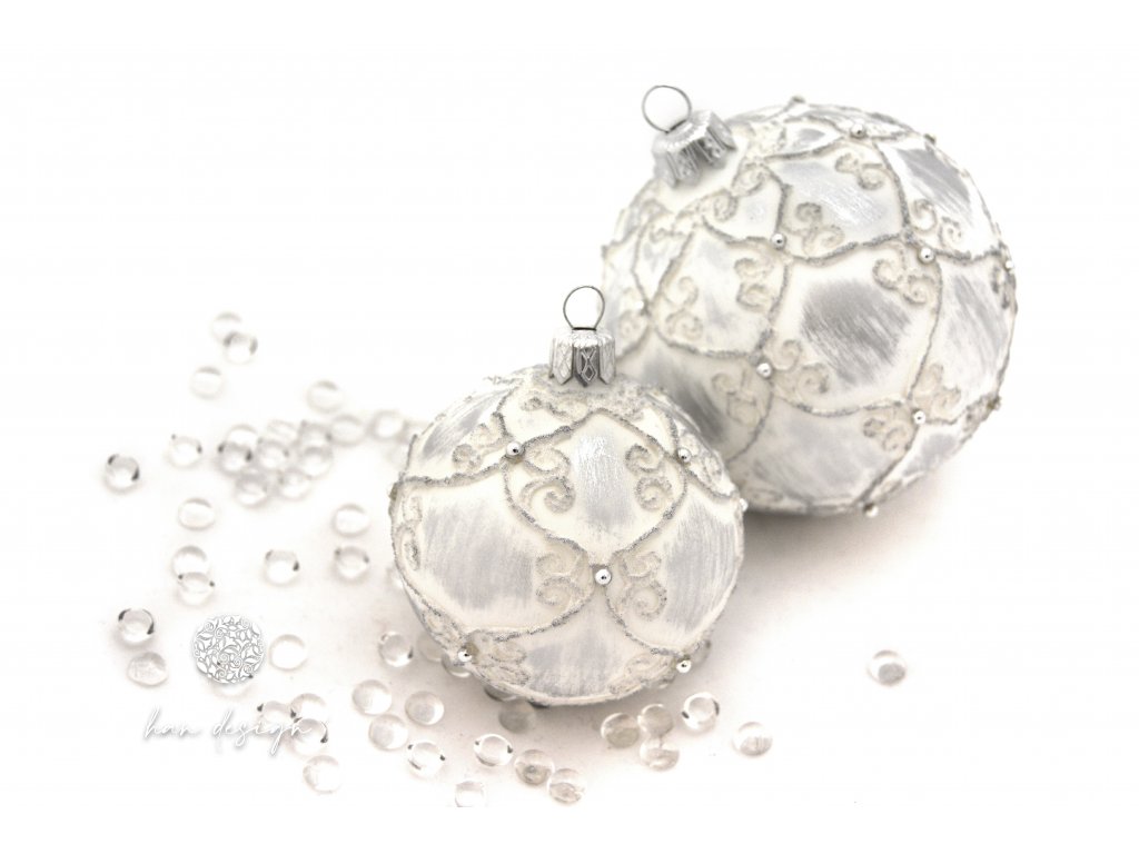 Delikátní vzor šupinaté síťky v odstínu bílé skořápky vytváří na kouli dojem lehkosti a jemné struktury, která připomíná přírodní harmonii a křehkost. Matný povrch s plastickým reliéfem zdůrazňuje tvar a dodává ozdobě elegantní a nadčasový vzhled.