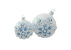 Jemná oliva v hlubokém odstínu modrého laku působí jako kapka zimního klidu. Na jejím povrchu se rýsuje náznak mrazivé vločky, dodávající ozdobě...