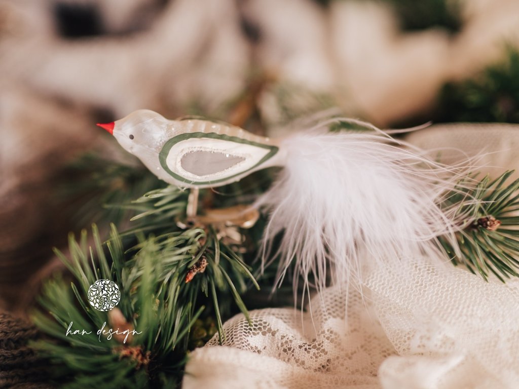 Vánoční skleněná ozdoba – pták střední z edice vánočního sobíka