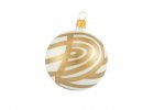 Jemné zlaté linie se vinou po bílém povrchu olivy lampionu, jako by zachycovaly jemné světlo a zdůrazňovaly tvar ozdoby. Elegantní linie a precizní...