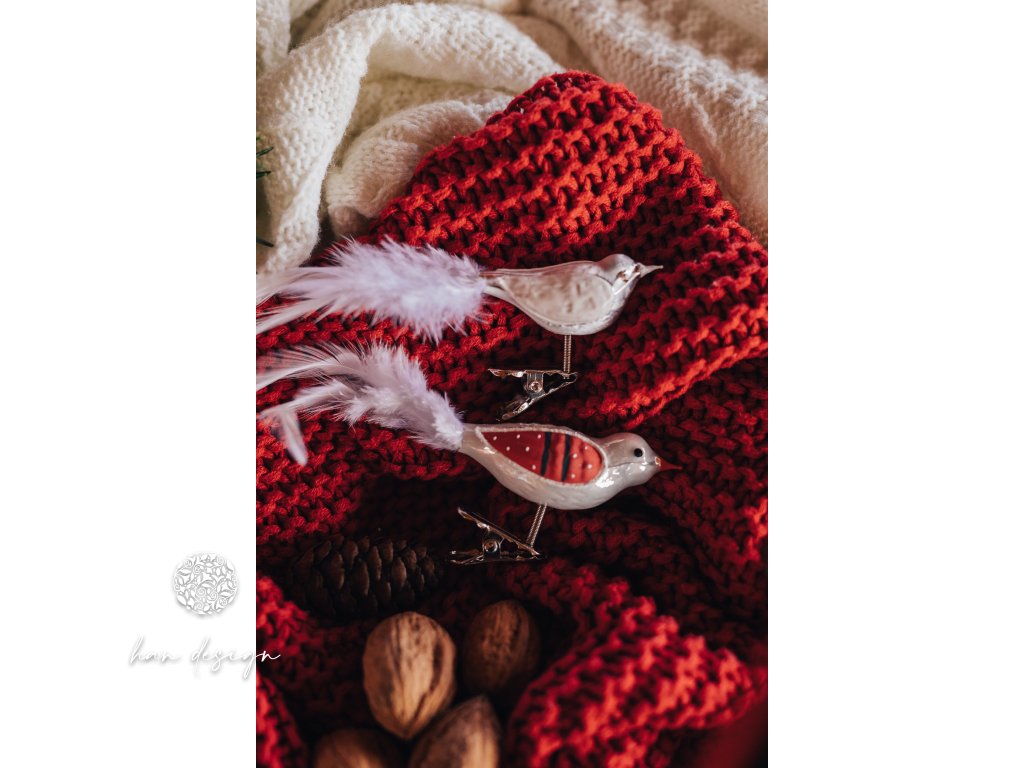 Ptáček s jemným dekorem symbolizuje domov a bezpečí a přináší do výzdoby pocit tepla a útulnosti. Matný bílý povrch v odstínu mrazolaku zdůrazňuje jeho něžnost a dodává ozdobě nádech křehké elegance. Ptáček působí jako tichý posel klidu a tradice.