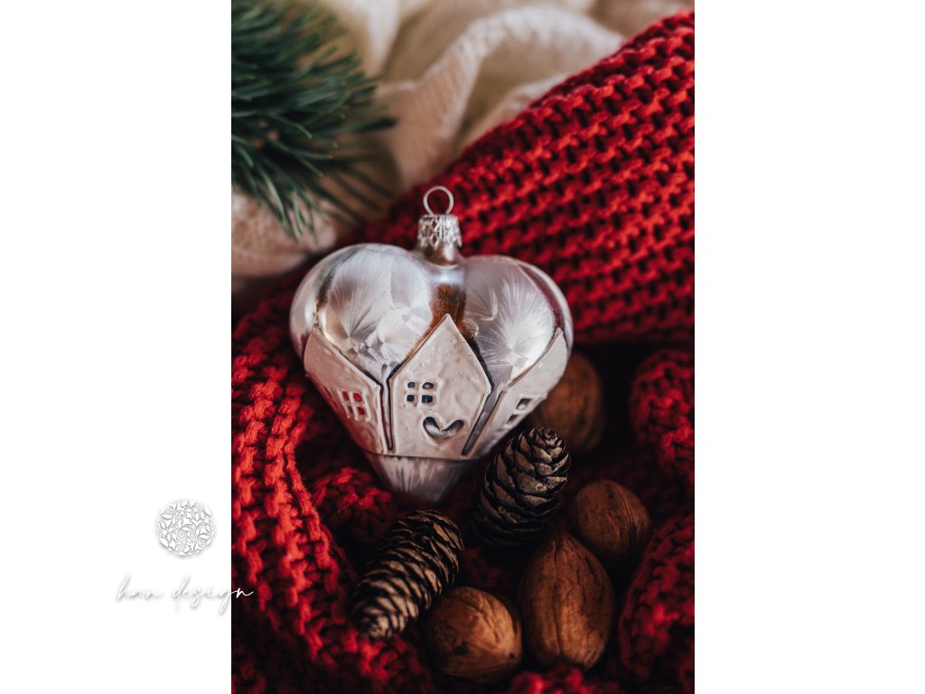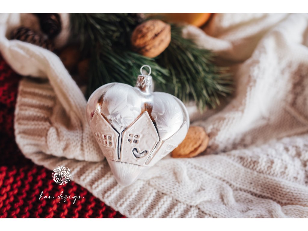 Srdce s jemným reliéfem domečků vypráví příběh domova, bezpečí a zastavených okamžiků. Bílý povrch v odstínu křehkého mrazu podtrhuje jeho něžnost a dodává ozdobě zvláštní kouzlo. Tato ozdoba je symbolem klidu, lásky a návratů — něžná a výjimečná jako vzpomínka ukrytá v každém detailu.