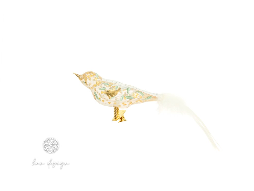 Vánoční skleněná ozdoba – pták velký „Březový sen“