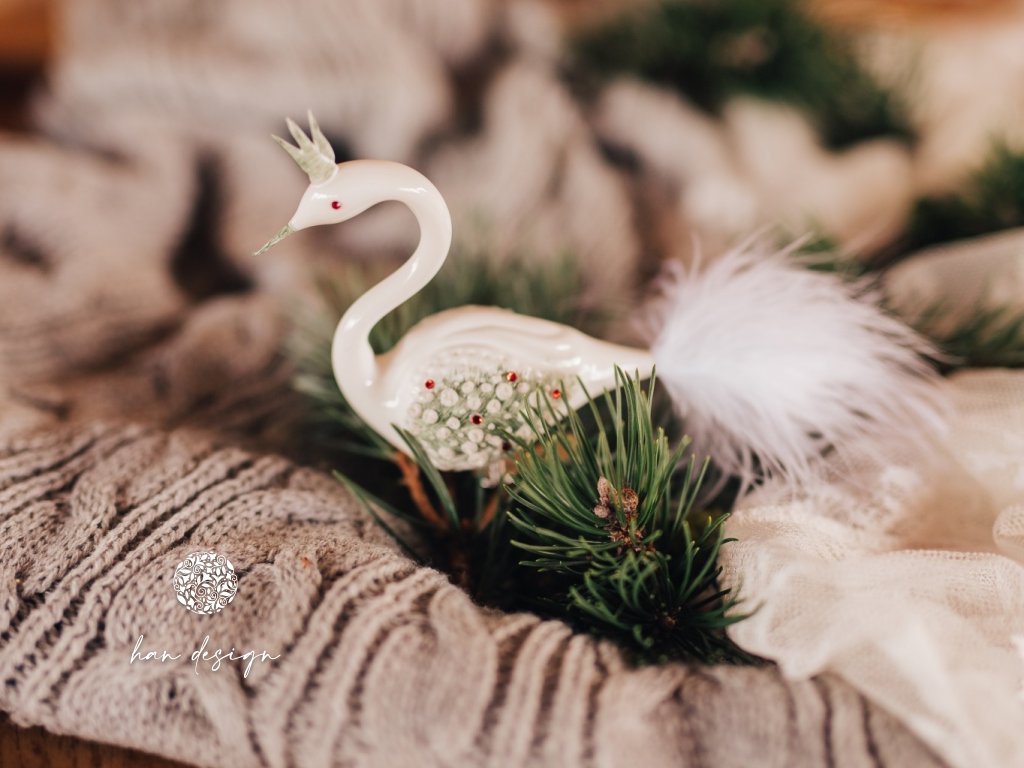 Vánoční skleněná ozdoba – labuť z edice vánoční věneček