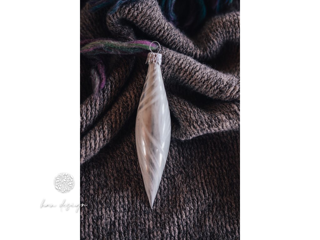 Vánoční skleněná ozdoba – oliva dlouhá s motivem jemných listů