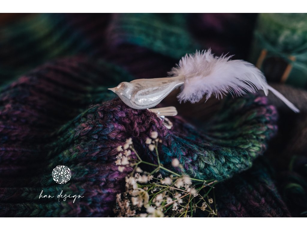 Lehký a půvabný, v porcelánově bílé barvě, zdobený jemným plastickým dekorem listů, tento malý ptáček působí jako tichý posel přírody a něhy. Jeho detailní peří dodává ozdobě vzdušnost a jemnost, která rozzáří každý kout vánočního stromku.