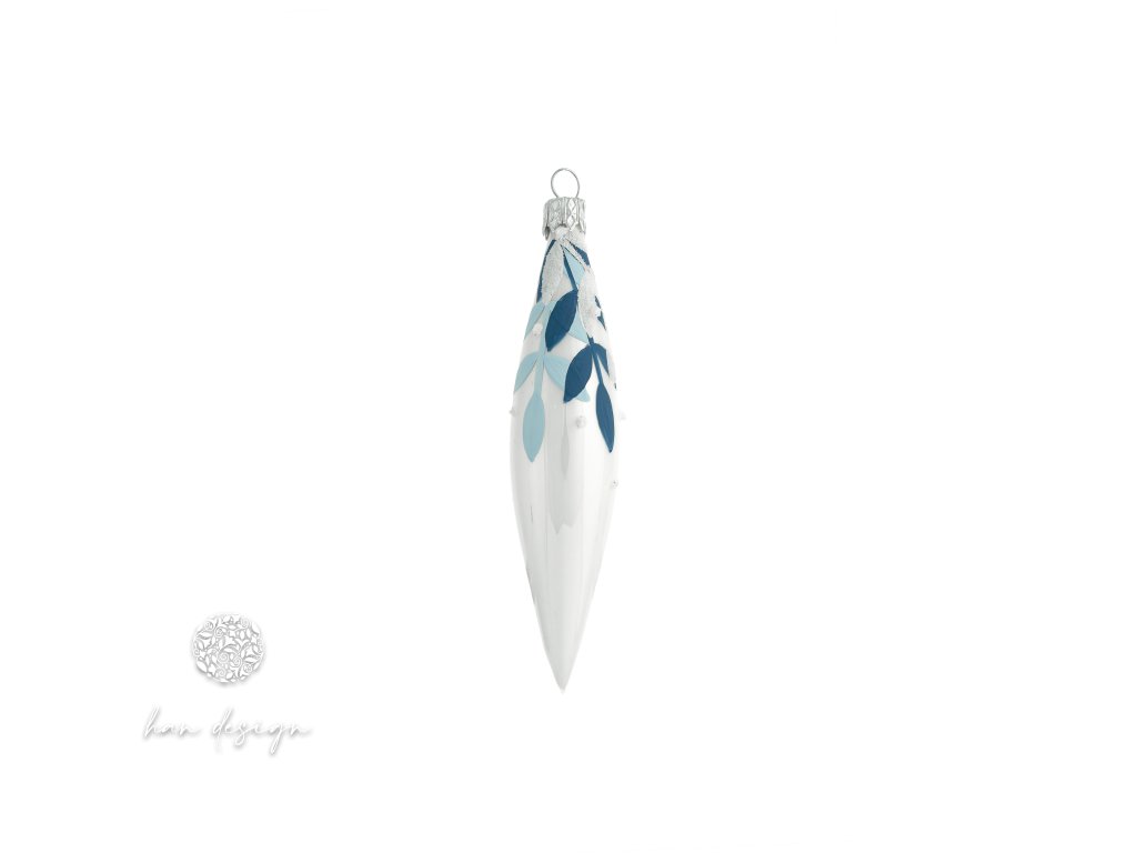 Vánoční skleněná ozdoba – oliva dlouhá s ledovými větvičkami