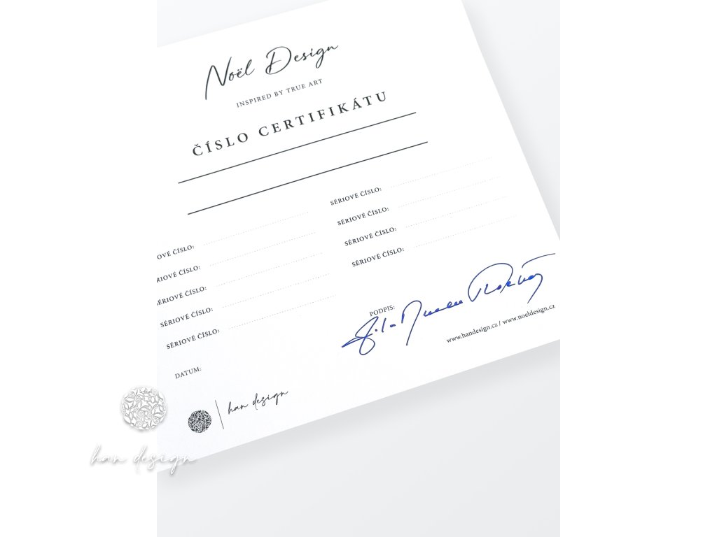 Tato jedinečná kolekce je zabalená v elegantní dárkové krabici, která podtrhuje její výjimečnost. Součástí balení je Certifikát originality s vlastnoručním podpisem autorky, který zaručuje jedinečnost a pravost výrobku.