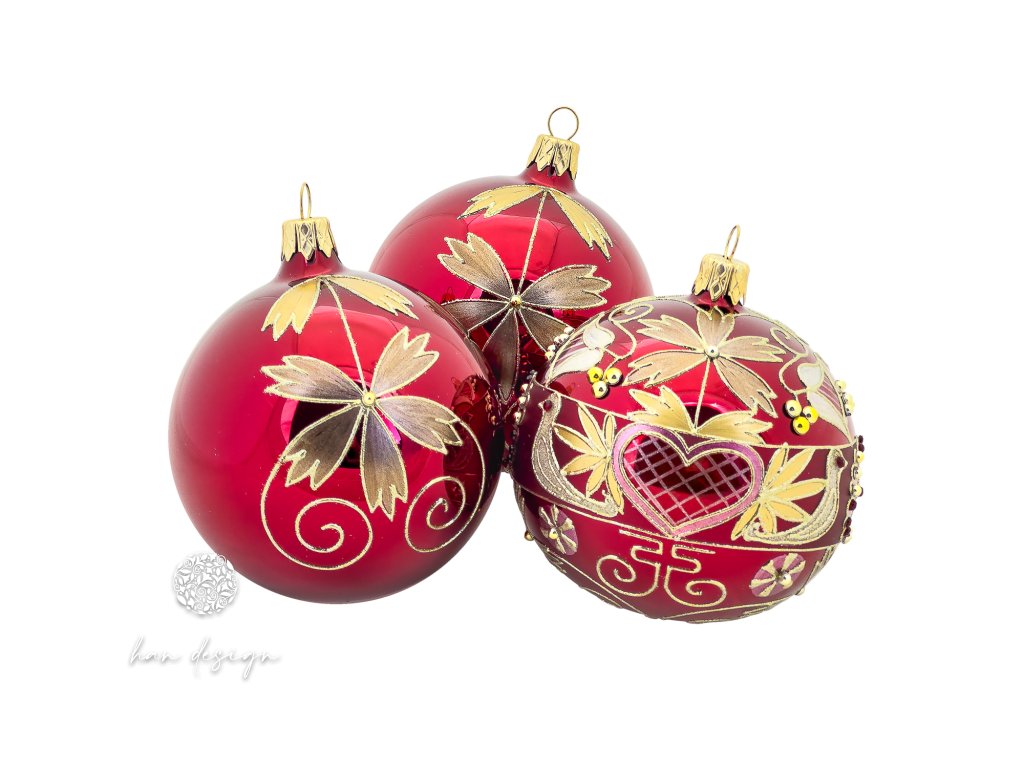 Unikátní čtyřkusová kolekce skleněných vánočních ozdob v červených tónech se inspiruje díly Alfonse Muchy v kombinaci s autorskou tvorbou Jarmily Mucha Plockové.