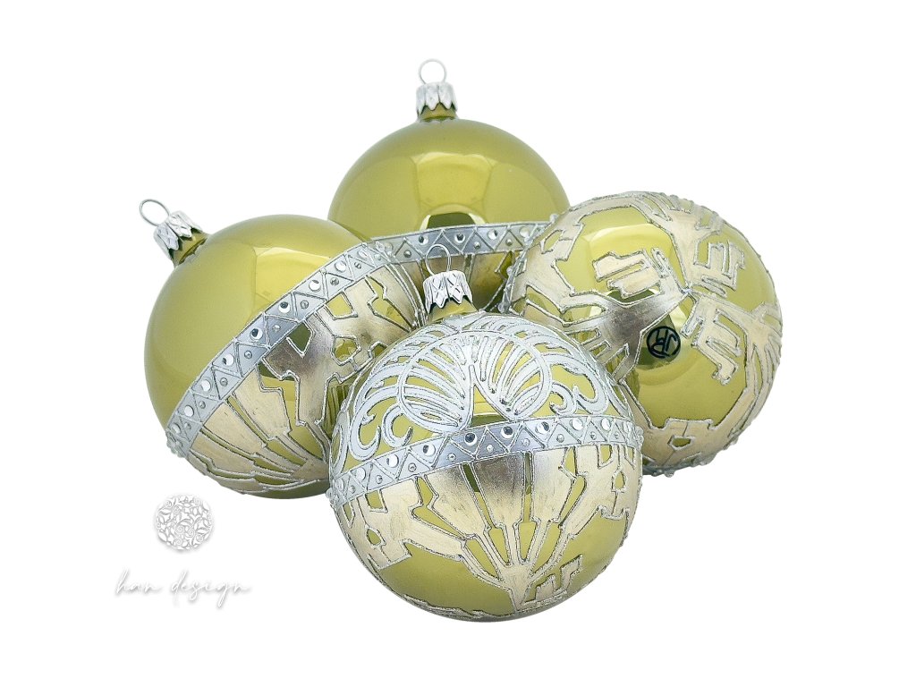Unikátní čtyřkusová kolekce skleněných vánočních ozdob v zelených tónech se inspiruje díly Alfonse Muchy v kombinaci s autorskou tvorbou Jarmily Mucha Plockové.