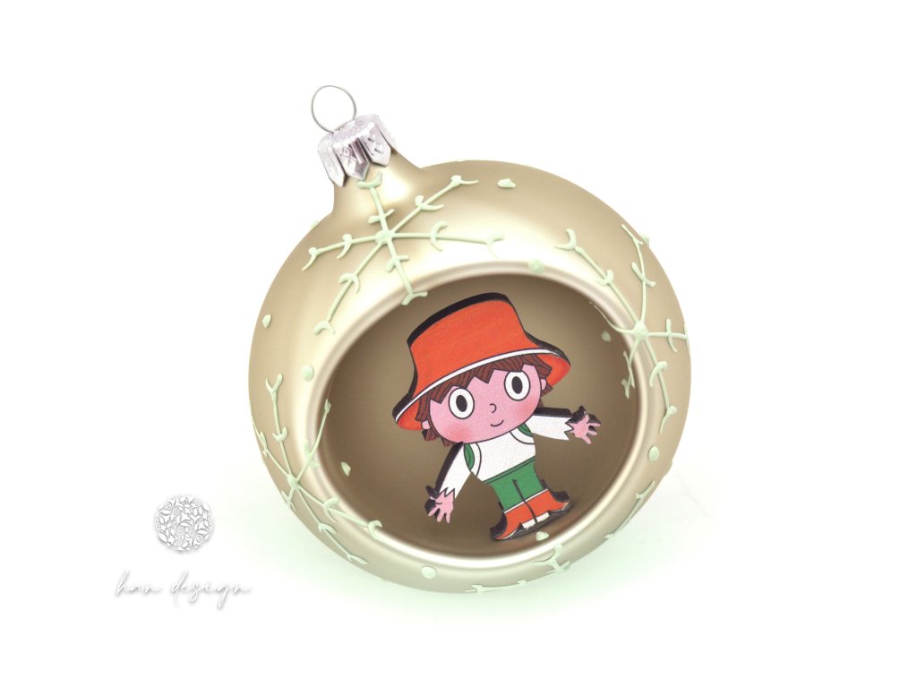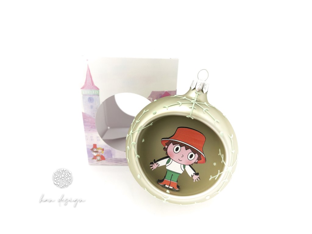 Rumcajsova skleněná vánoční ozdoba – Cipísek v zelené kouli