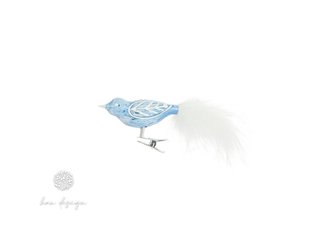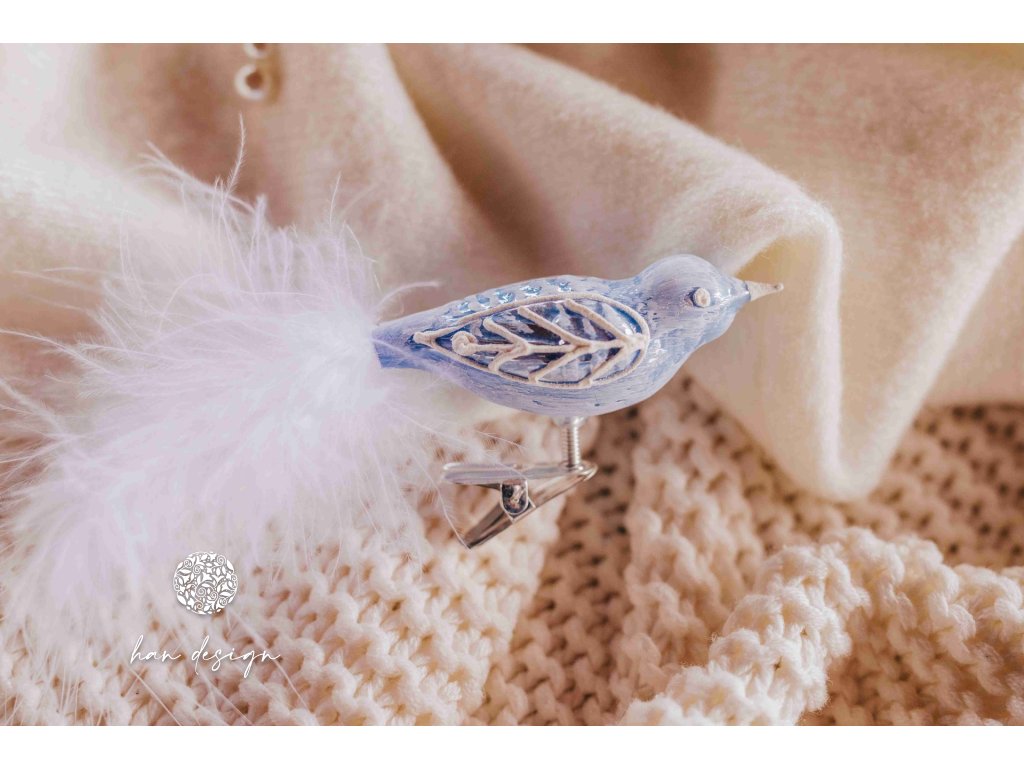 Vánoční skleněná ozdoba – pták střední ve sněhových tónech