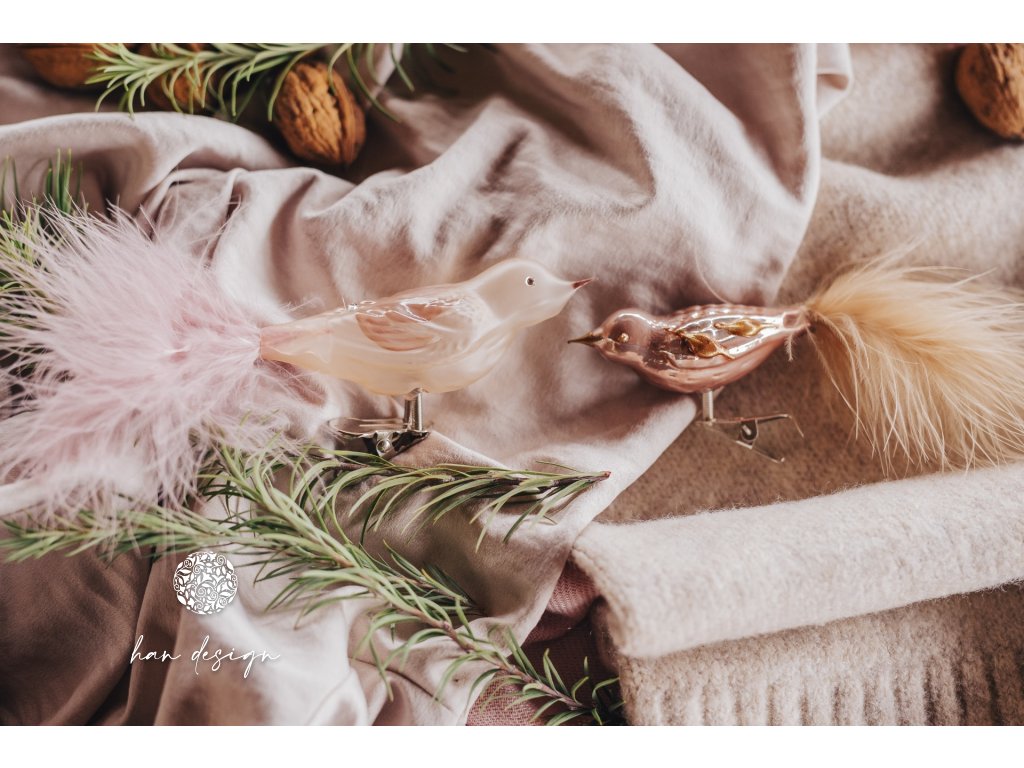 Vánoční skleněná ozdoba – pták střední „Jemný závoj“