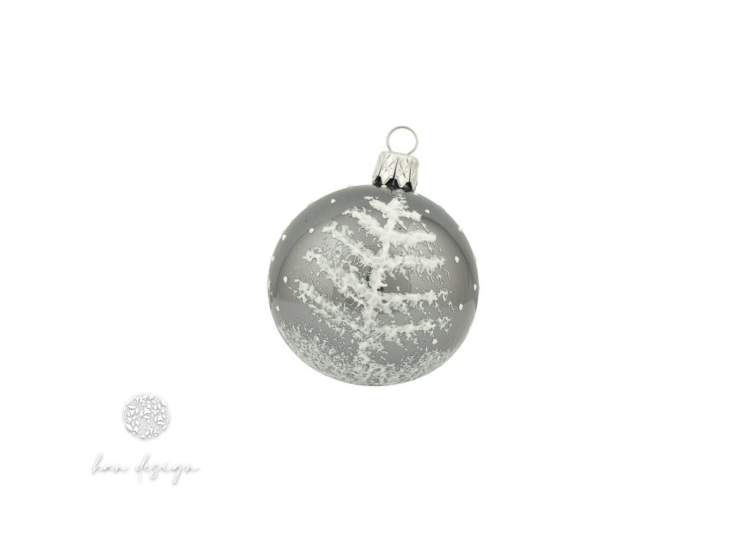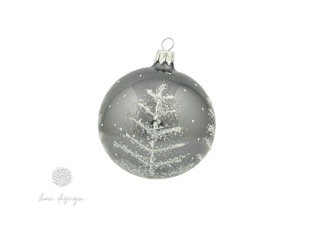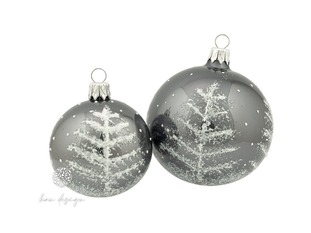 Dekor stromečků navozuje atmosféru zimního ticha, kdy se krajina halí do klidu a sněhu. Motiv pravidelně rozmístěných jehličnanů působí jemně geometricky a zároveň přírodně – jako zasněžený les zachycený v čase. Koule vnáší do prostoru eleganci, lehkost a hřejivou vzpomínku na tradiční Vánoce.