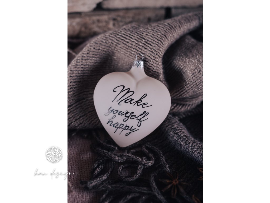 Jemný nápis „Make yourself happy“ zdobí hladký povrch srdce a přináší do prostoru optimistickou a povzbuzující atmosféru. Precizní ruční malba doplňuje jednoduchý, přesto výrazný design, který potěší každého, kdo ocení osobitost a kvalitu.