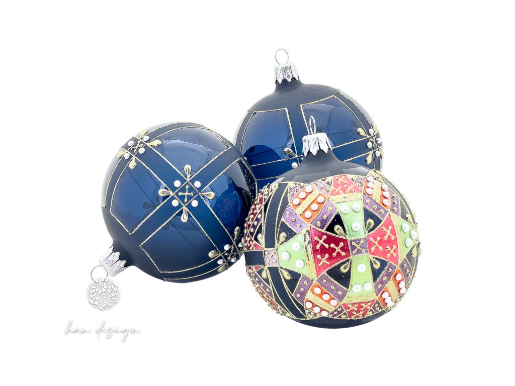 Unikátní čtyřkusová kolekce skleněných vánočních ozdob v modrých tónech se inspiruje díly Alfonse Muchy v kombinaci s autorskou tvorbou Jarmily Mucha Plockové.