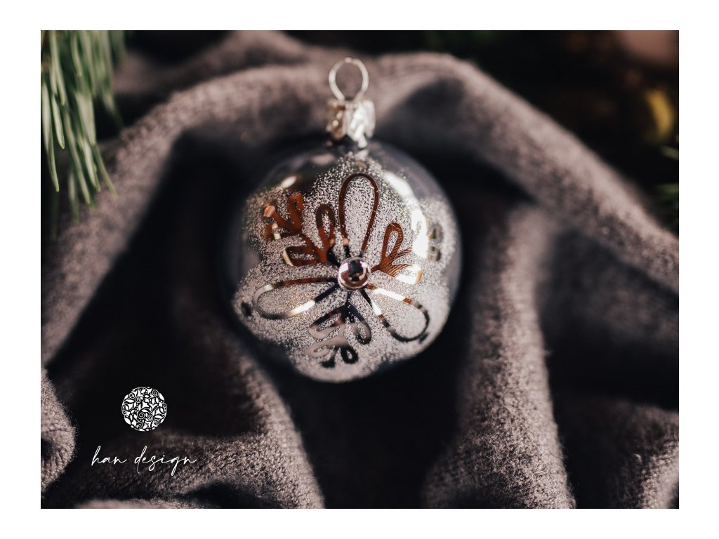 Jemná struktura vločky se rozprostírá po povrchu koule jako mrazivý květ zimního rána. Každý drobný krystal září svou jedinečnou krásou a připomíná křehkost okamžiku, kdy příroda maluje své nejjemnější vzory. Koule v sobě nese ticho zasněžené krajiny a šepot mrazivého větru, který hladí větve a zdobí je třpytivými křišťály.