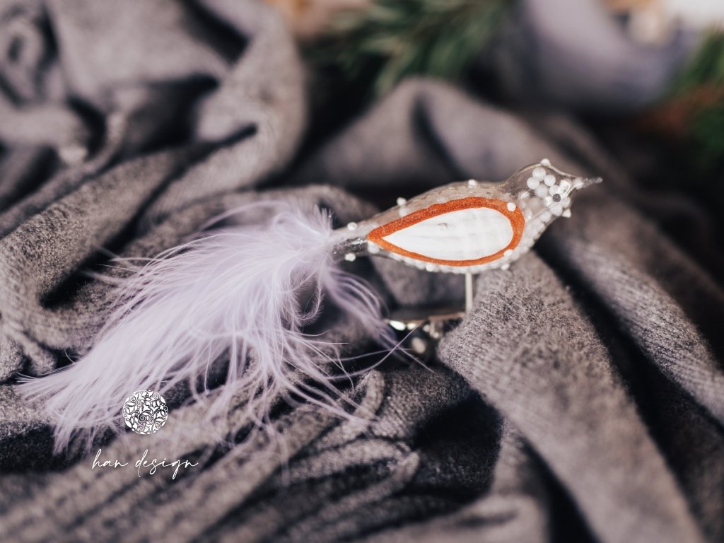 Jemný ptáček s bílým peříčkem a stříbrným leskem těla přilétá jako něžný zimní návštěvník, který tiše roznáší klid a krásu zasněžených dní. Jeho hebký, načechraný ocas se lehce vlní jako pírko na zimním větru a dodává celé ozdobě vzdušnou lehkost a křehký půvab. Tento drobný strážce vánočního stromku rozzáří každý kout sváteční výzdoby něžným třpytem a tichou radostí zimního rána.