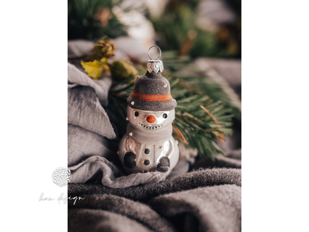 Hravý sněhulák v klobouku a s vlající šálou připomíná zimní radosti plné smíchu a sněhu. Jeho jemně modelované detaily – klobouk, knoflíky, šála i úsměv – vytvářejí osobitý výraz, který zahřeje u srdce. Sněhulák působí mile a zároveň tradičně, jako nadčasový symbol dětské radosti a vánočního kouzla.