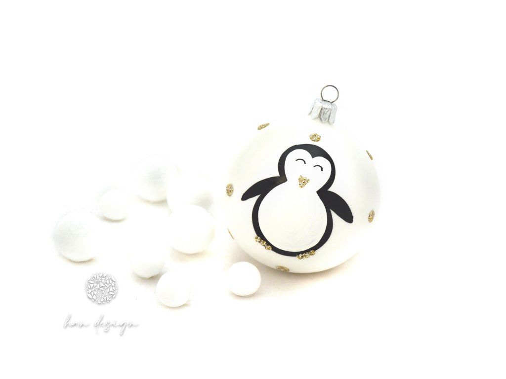 Vánoční skleněná ozdoba - koule dekorovaná - tučňák