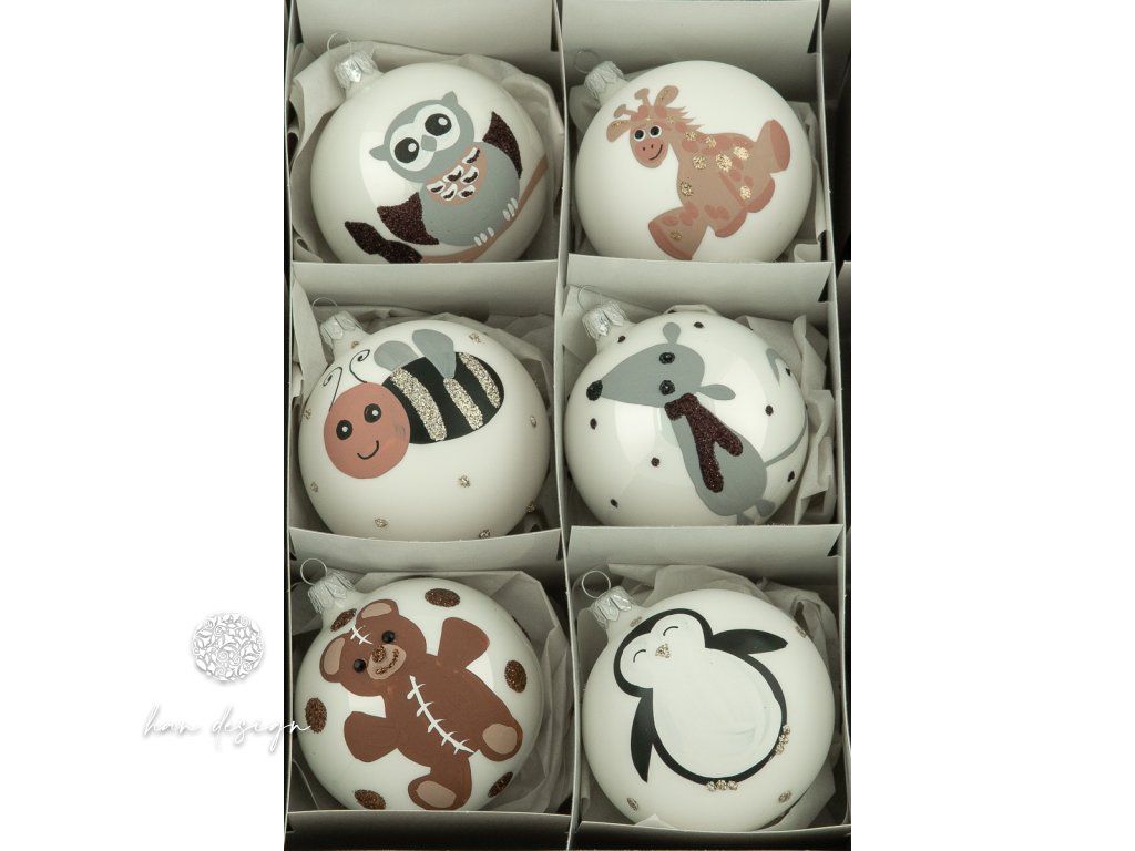 Ručně foukaná v naší jičínské dílně a pečlivě malovaná zkušenými výtvarnicemi. Každý detail je vytvořen s láskou a péčí, zatímco bílá skořápka dodává kouli jemnost a přirozený vzhled.