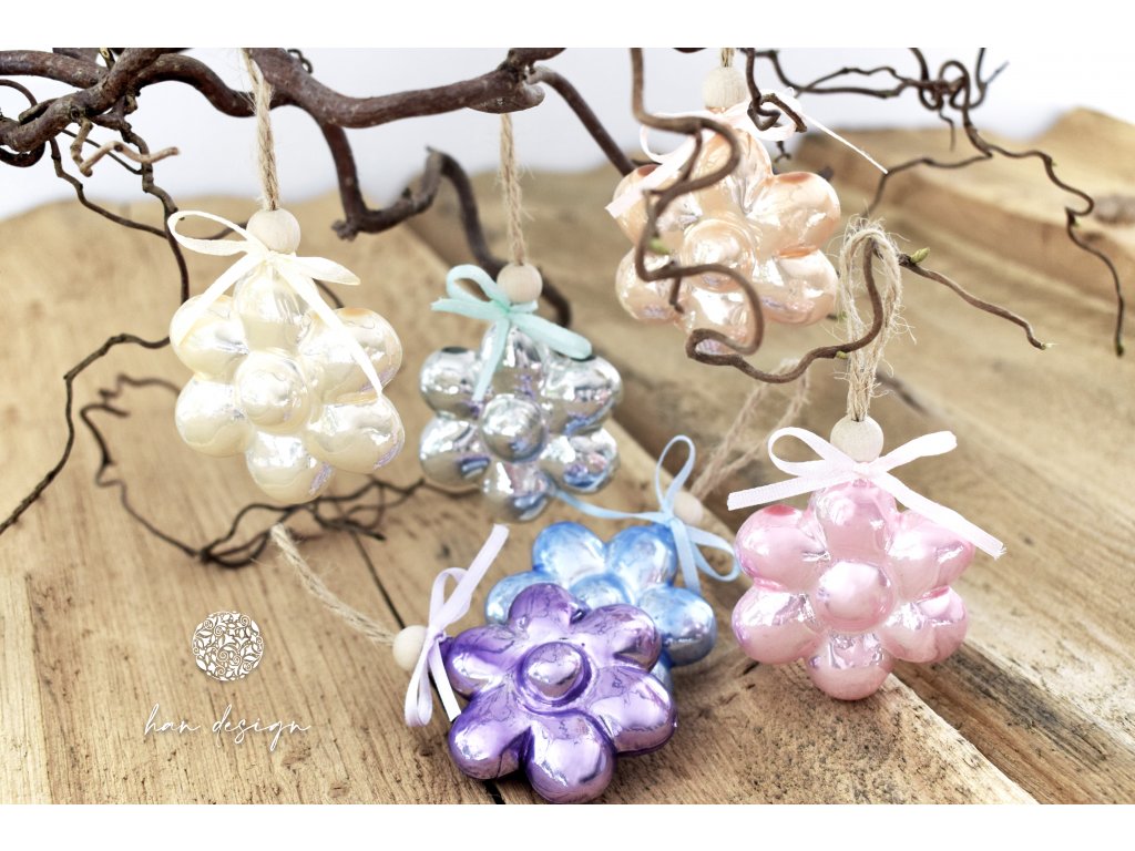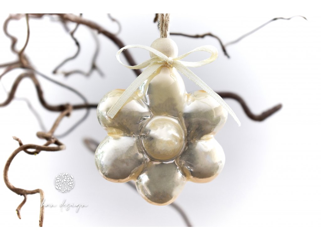Velikonoční skleněná ozdoba, Pastelová kolekce - smetanová kytka