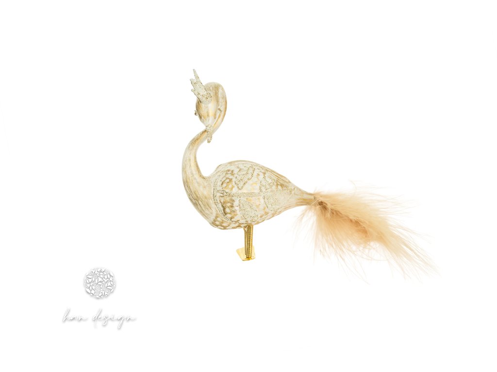 Vánoční skleněná ozdoba – labuť s korunkou „Listová harmonie“